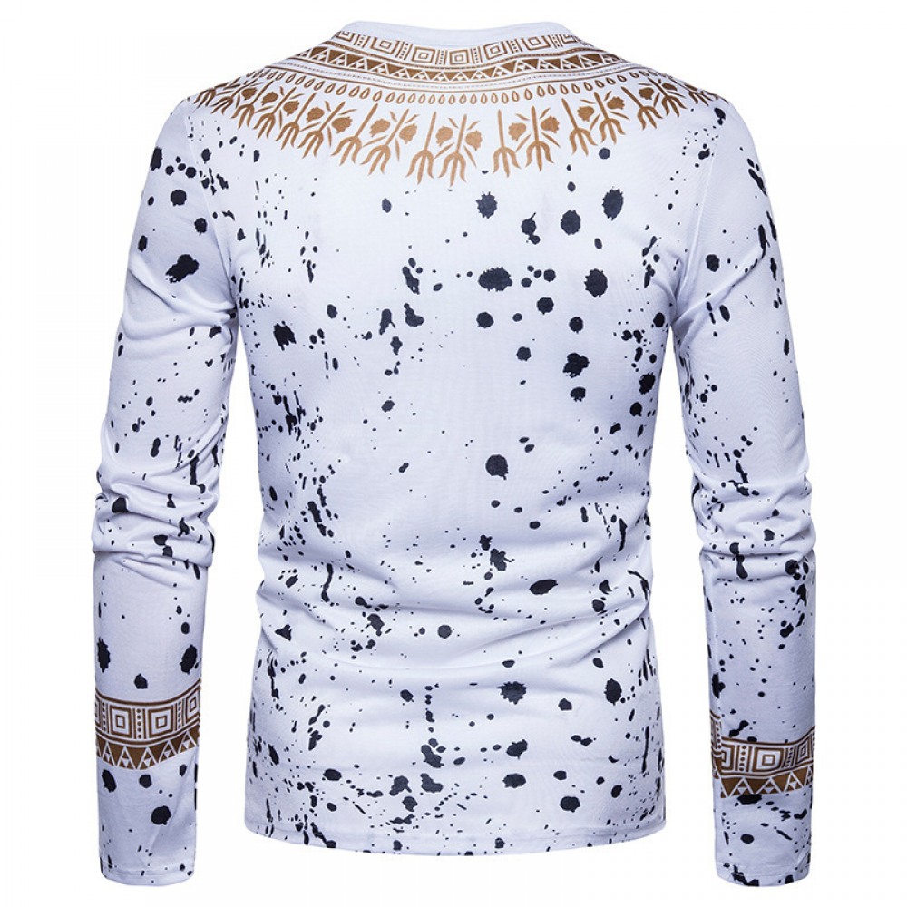 Fashion Male Creative Ethnic Style Floral 3D Printing Long-Sleeved T-Shirt