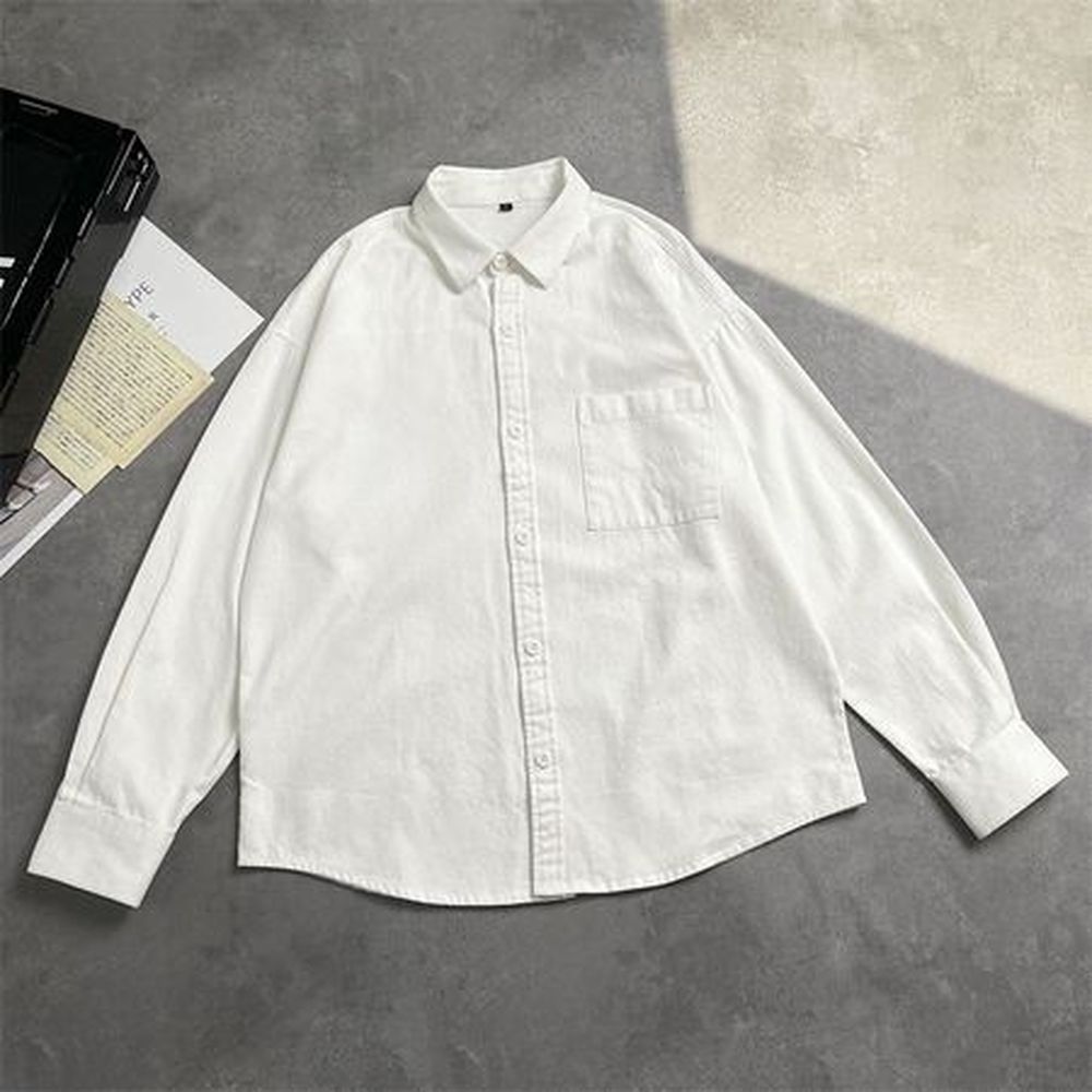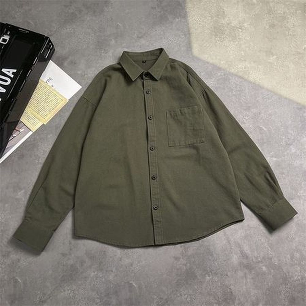 Men's Long Sleeve Shirt Solid Color Casual Lapel Shirt