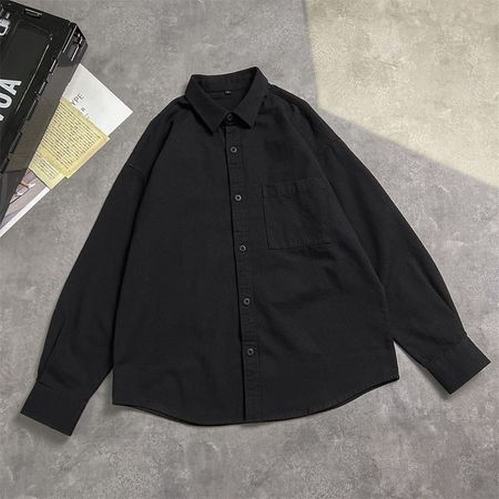 Men's Black Shirt Large Size Casual Long Sleeve Shirt
