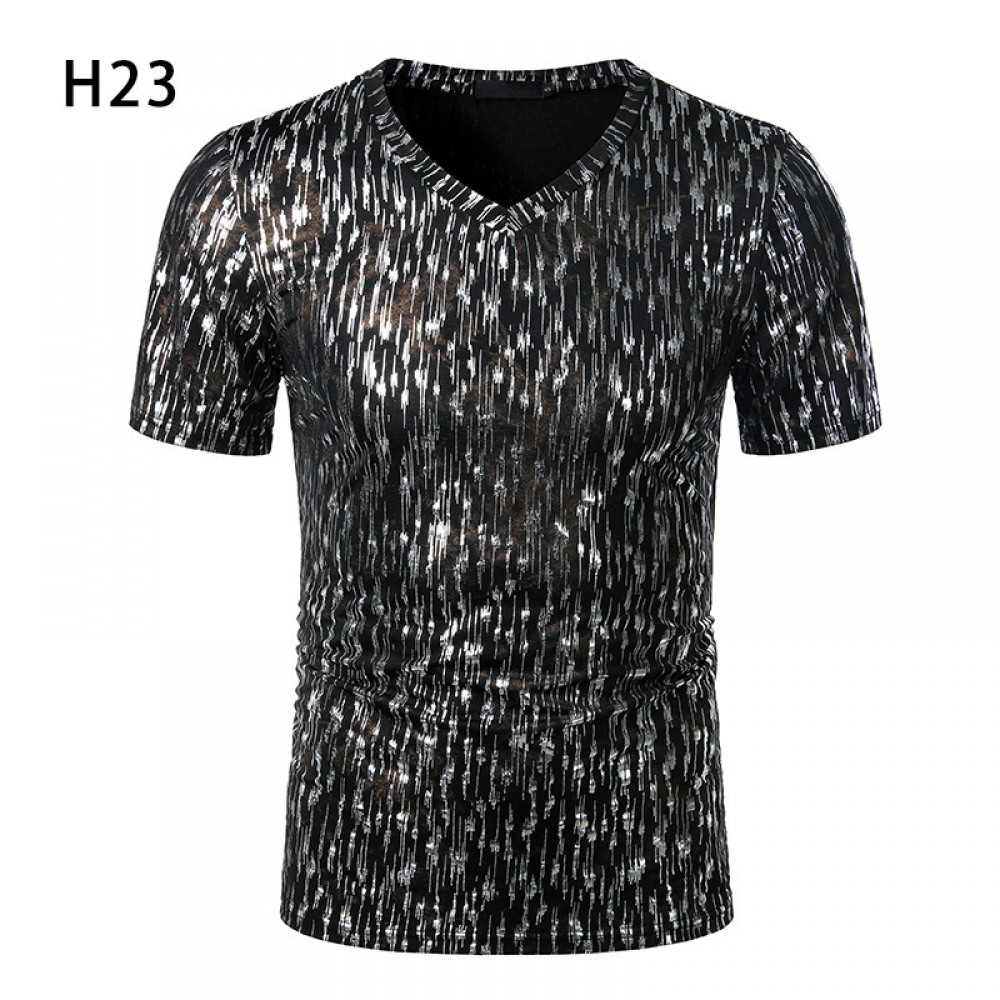Summer Men's Nightclub Bar Fashion Casual Hot Stamping Printing Short-Sleeved Printed T-Shirt