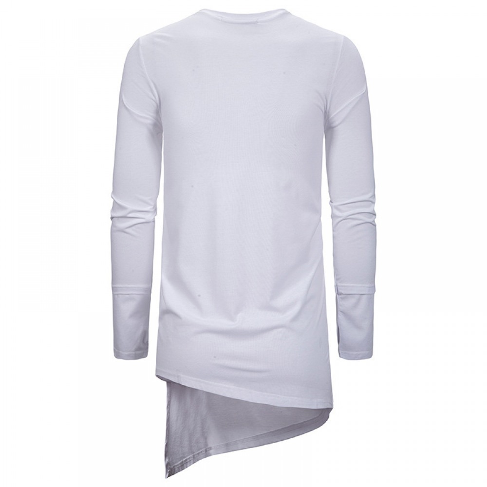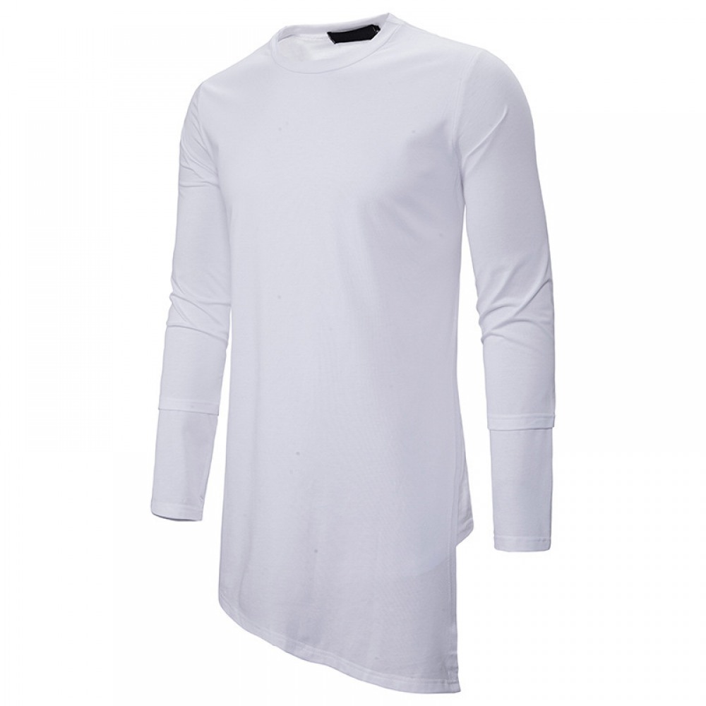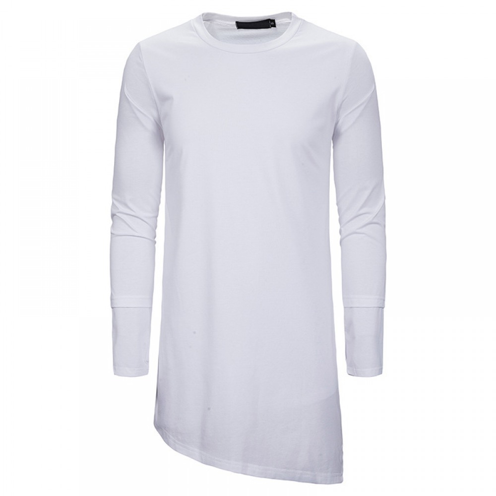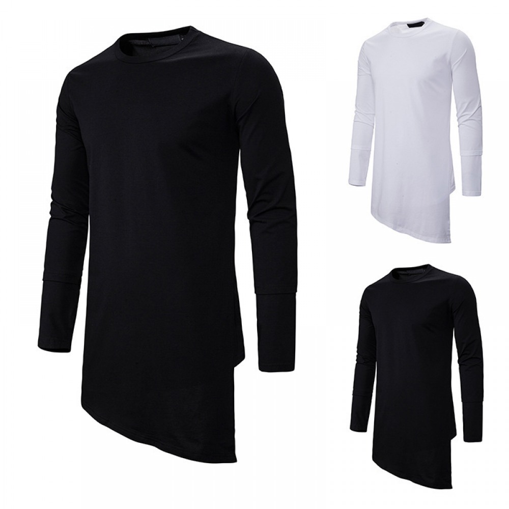 Trendy Brand Round Neck Long T-Shirt Men's Loose Dark Trend Irregular Hem Mens Long-Sleeved T-Shirt