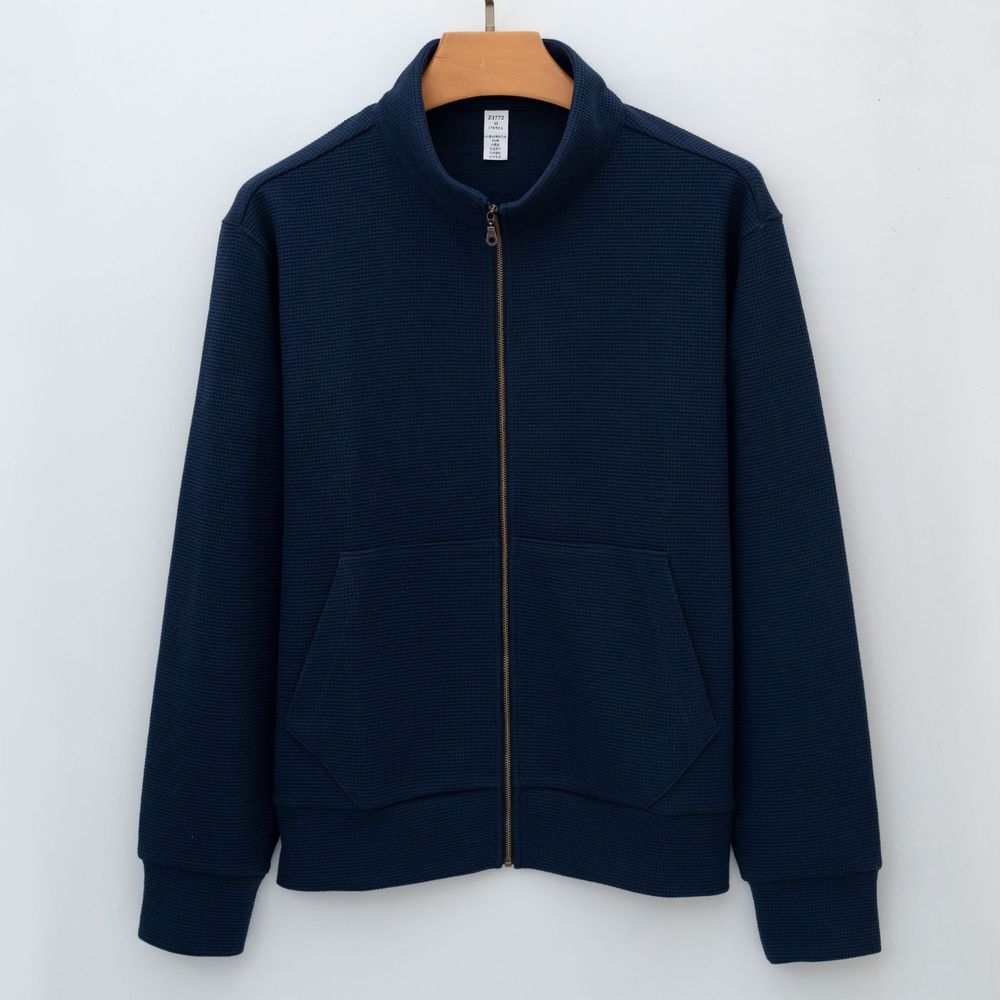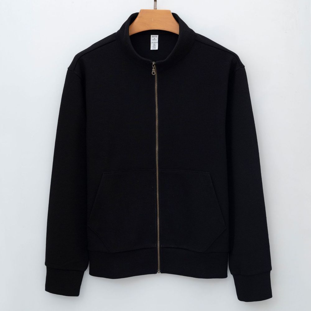 Solid Color Loose Drop Shoulder Stand Collar Sweatshirt Men's Zipper Jacket