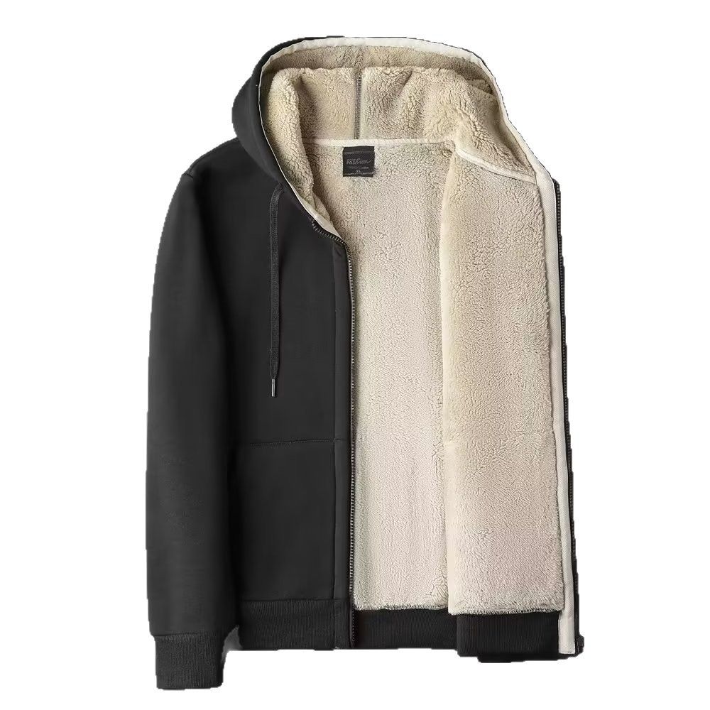 Men's Fleece Thickened Jacket with Zip-up Hood Loose Fit