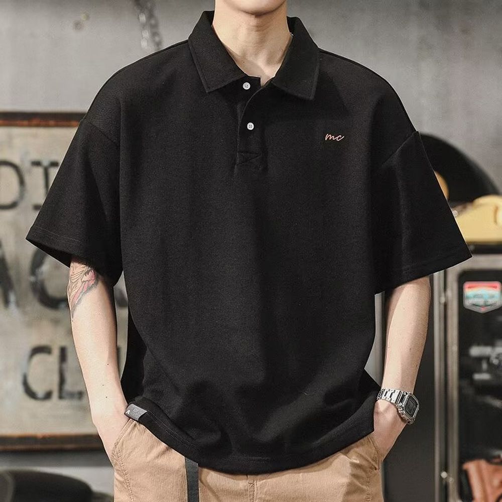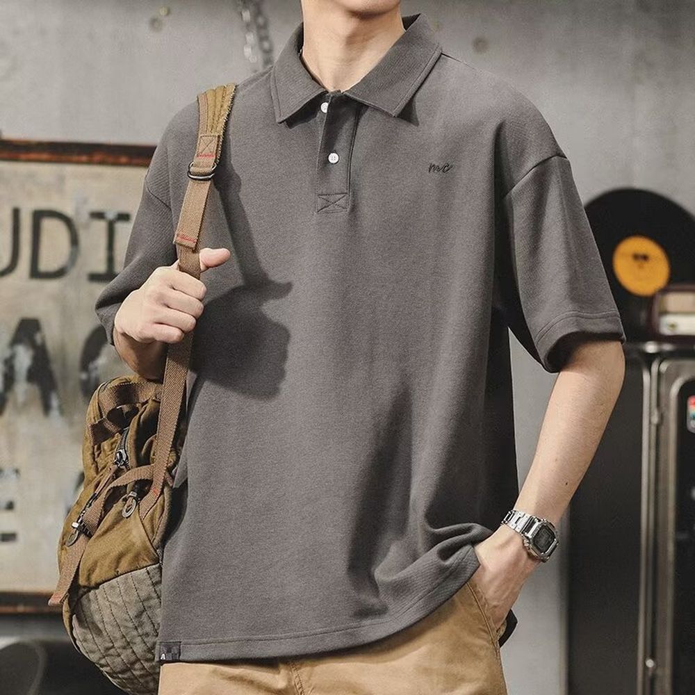 Men's Summer Loose Large Size Polo Shirt Solid Color Short-Sleeved T-Shirt