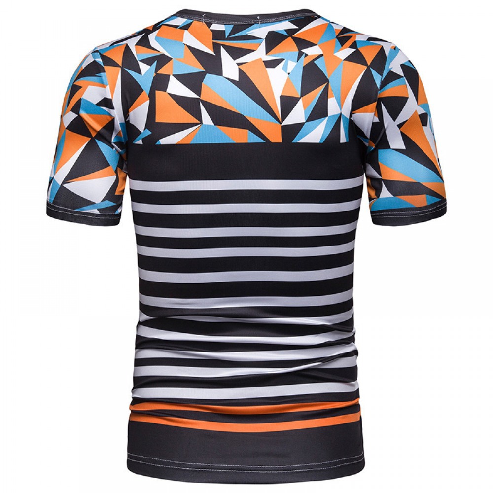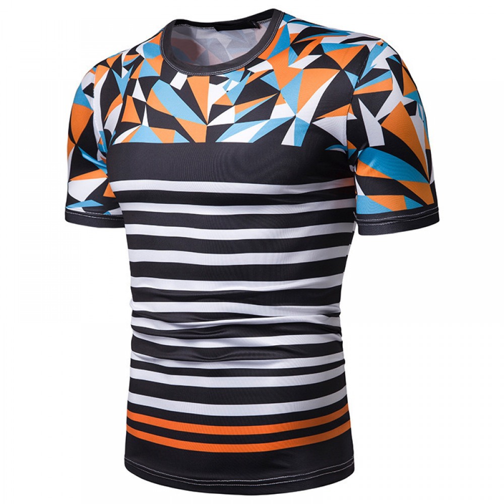 New Summer Men's Short-Sleeved T-Shirt Mens Contrast Striped Slim Casual T-Shirts