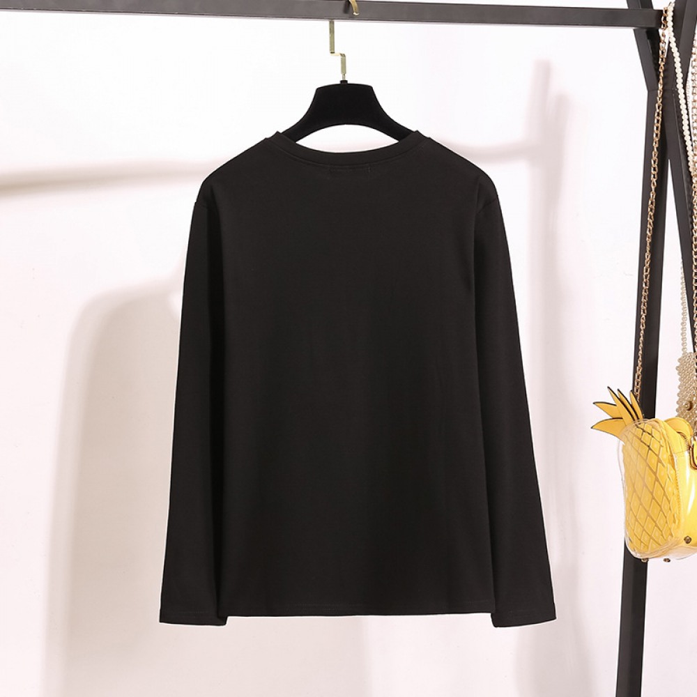Plus Size Bottoming Shirt Female Fat Sister New Loose Round Neck Embroidered Long Sleeve T-Shirt for Women